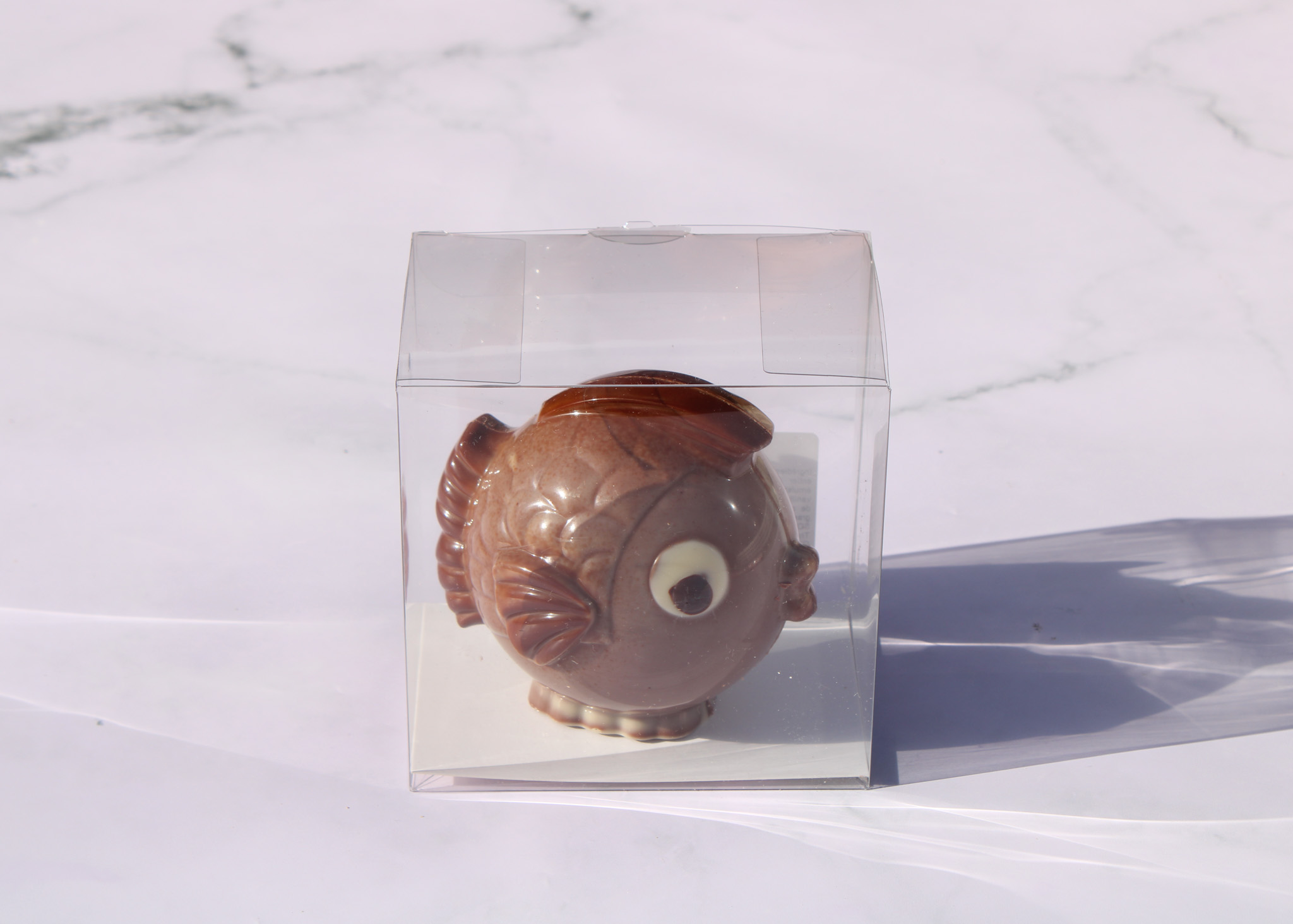 Round Easter fish in milk chocolate (32% cocoa minimum).