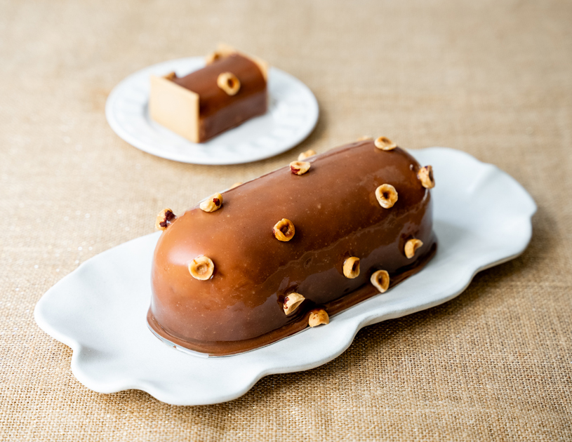 Raffinée et généreuse, cette bûche décline la noisette sous toutes ses formes