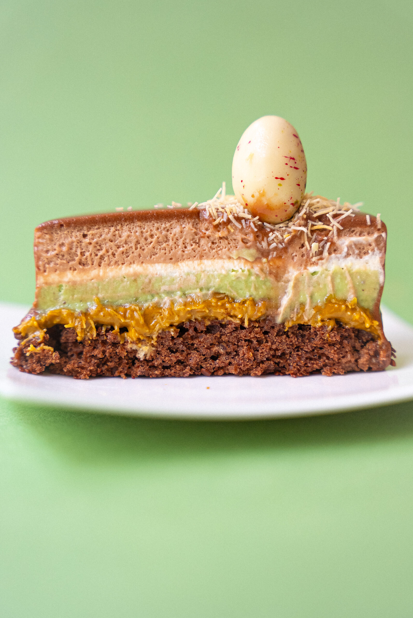 entremets généreux à la PISTACHE, chocolaté et croustillant