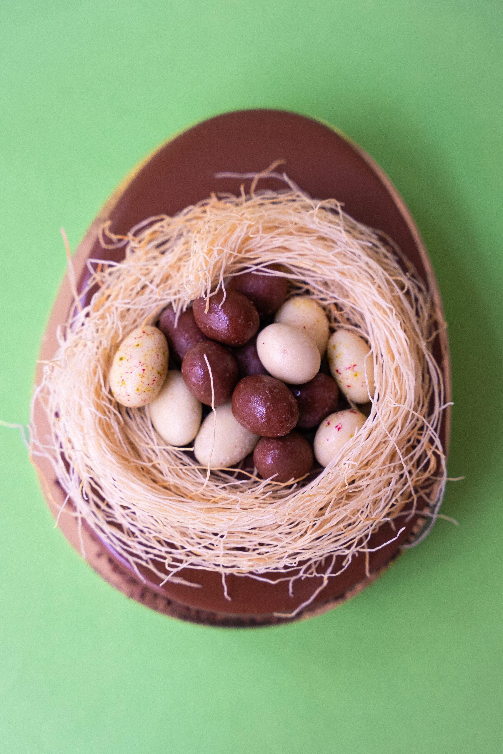 Ingrédients : pâte à PISTACHE 32% (PISTACHES, sucre, huile de PISTACHE), CRÈME, glaçage (sucre, graisse végétale totalement hydrogénée (noix de coco, palmiste), poudre de LAIT écrémé, émulsifiant : lécithine de SOJA), nouille kadaïf (eau, farine de BLÉ dur), chocolat (sucre, pâte de cacao, beurre de cacao, NOISETTES, poudre de LAIT entier, poudre de LAIT écrémé, émulsifiant : lécithine de SOJA, arôme naturel de vanille), pâte à PISTACHE (PISTACHES, sucre, eau, arôme, colorants : E141, E161bii, humectant : E422, émulsifiant : E414, antioxydants : E307, E304, acide ascorbique, acidifiant : E500), LAIT, ŒUF, sucre, jaune d’ŒUF, BEURRE, farine de BLÉ, gélatine (bovine), sucre inverti, poudre d’AMANDE, huile de pépin de raisin, cacao en poudre, pâte de cacao, eau, levure, PISTACHES, sel, vanille en poudre.