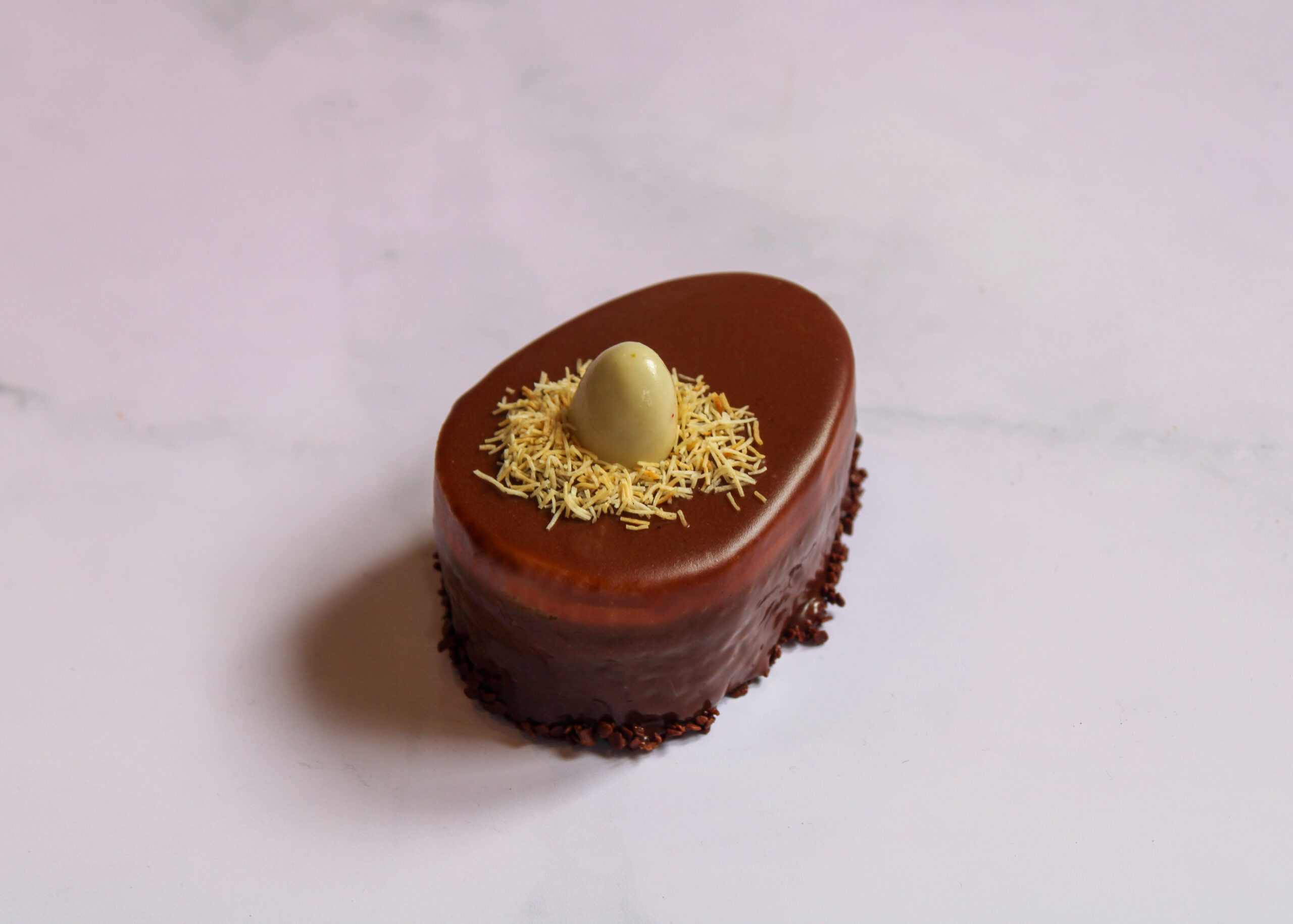 un entremets ultra gourmand à la PISTACHE, sublimé par un cœur chocolaté